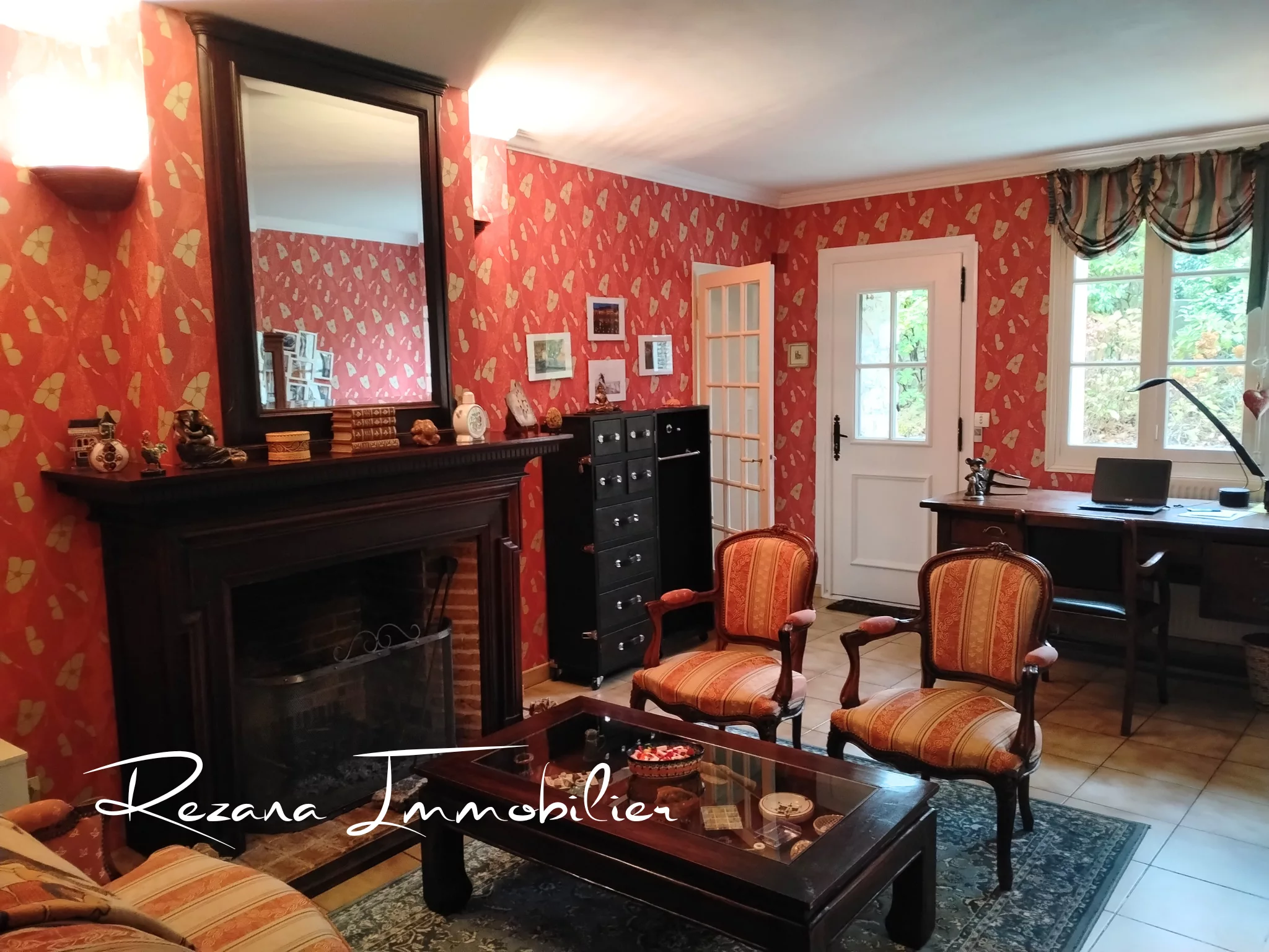 Un salon cosy et séparé, équipé d’une cheminée, crée une atmosphère chaleureuse idéale pour les moments de détente.